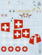 aircraft in the red and white Swiss Air Force markings. This decal sheet
